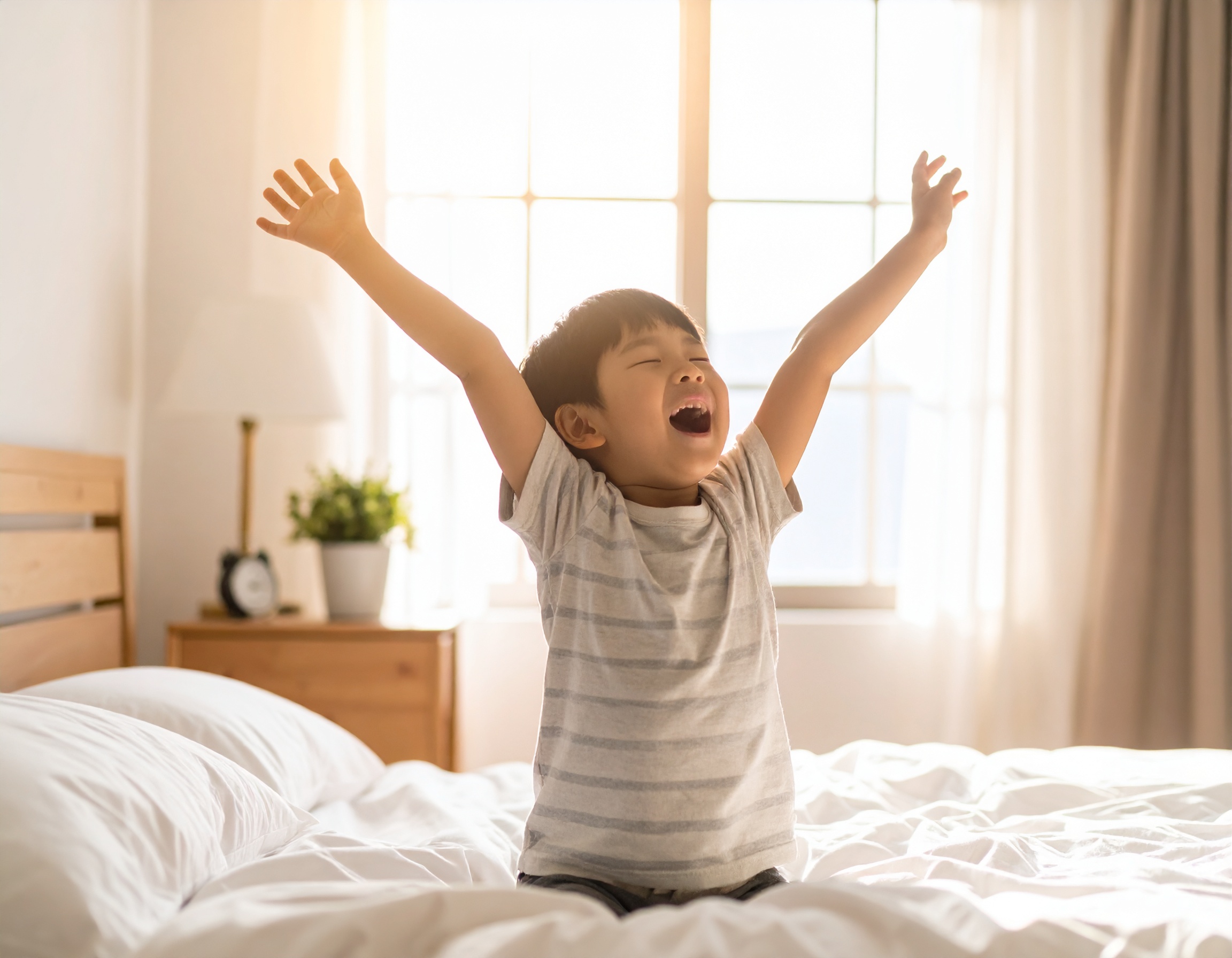 おはようのび!元気な朝のスタート 癒し 2025.06.03 朝の光が差し込む寝室で、大きく両手を広げて伸びをする男の子。目覚めの瞬間の爽やかさと、1日の始まりを楽しむような無邪気さが伝わる1枚です。生活や健康、育児関連のコンテンツにぴったりです。 DownLoad Small sizeMedium sizeLarge size この記事のタグ:#ストレッチ#元気#子ども#寝室#日本人#朝#爽やか#生活#男の子#目覚め#笑顔#育児