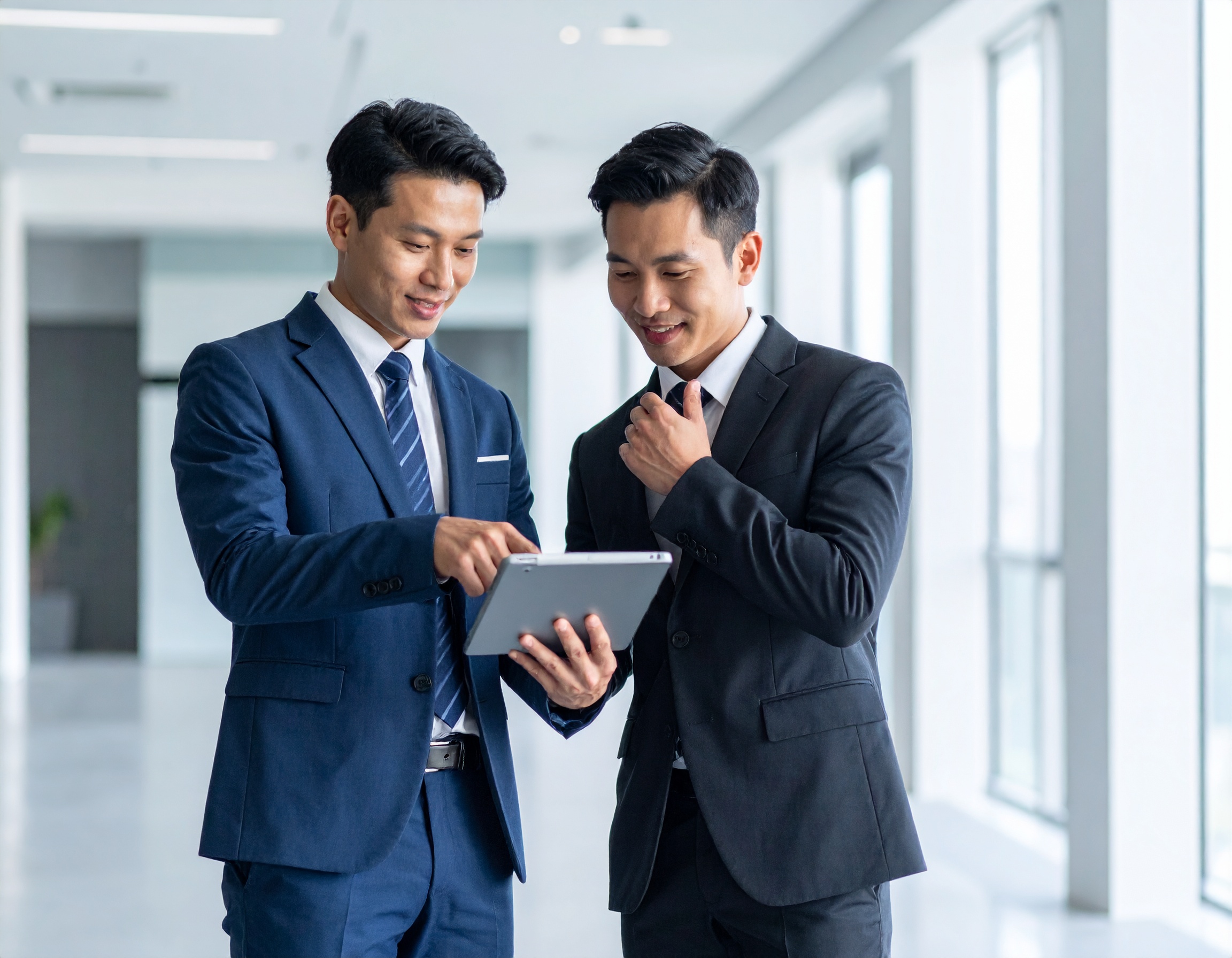 ビジネスマンの打ち合わせ風景 安心 2025.06.13 現代的なオフィス空間で、スーツ姿の若い日本人男性二人がタブレットを見ながら打ち合わせをしている様子。真剣な中にも柔らかい表情があり、協力や成長、共有といったポジティブなビジネスシーンを感じさせる一枚です。 DownLoad Small sizeMedium sizeLarge size この記事のタグ:#オフィス#コミュニケーション#スーツ#タブレット#ビジネスマン#会議#信頼#打ち合わせ#笑顔#若手社員
