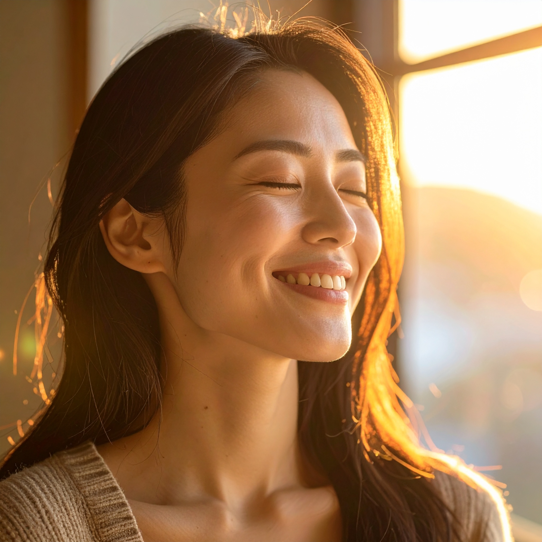 夕陽に包まれて微笑む、癒しのひととき 安らぎ 2025.05.27 30代の日本人女性が、やわらかな夕陽に照らされながら目を閉じてほほえむ癒しのワンシーン。穏やかで温かい感情が伝わる表情は、見る人の心をそっと包み込みます。安心感や感謝のイメージカットとして活用できます。 DownLoad Small sizeMedium sizeLarge size この記事のタグ:#リラックス#夕陽#女性#安心感#幸福#微笑み#柔らかい表情#癒し#穏やか#表情素材