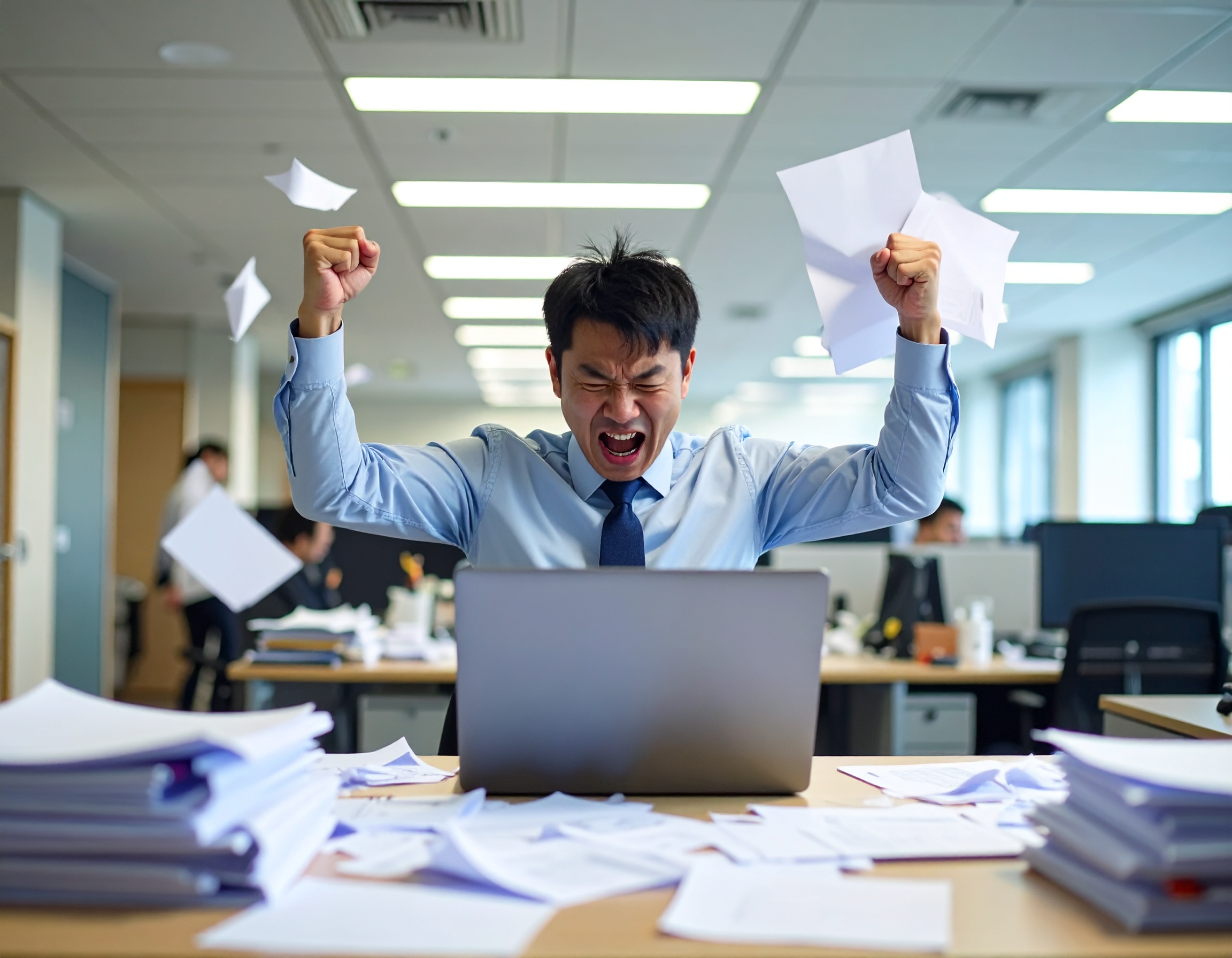 怒り爆発!オフィスで感情を爆発させる男性 怒り 2025.06.21 オフィスで怒りを爆発させた男性が、両手を突き上げて叫ぶ様子を捉えたインパクトのある一枚。デスクには散乱した書類、後ろには冷静な同僚たち。日常のストレスや感情の爆発をリアルに表現しています。 DownLoad Small sizeMedium sizeLarge size この記事のタグ:#オフィス#サラリーマン#ストレス#ビジネスマン#働き方#営業職#怒り#感情爆発#感情表現#書類