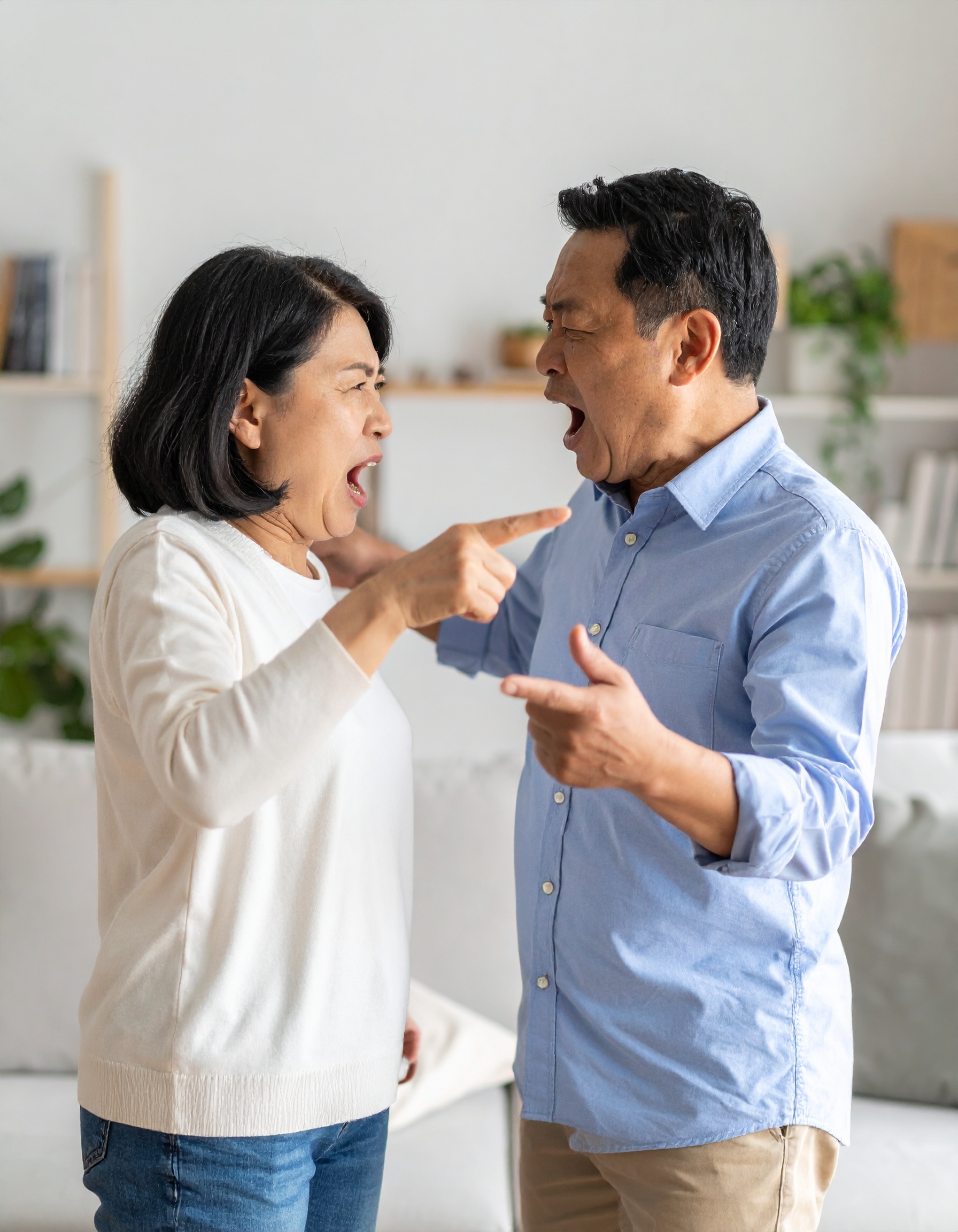 感情をぶつけ合う中年夫婦の口論シーン 不満 2025.06.07 リビングで激しく口論する中年の日本人夫婦。互いに指を差しながら叫び合う姿は、感情の衝突とすれ違いをリアルに表現しています。表情もポーズも誇張されており、怒り・葛藤・家庭内トラブルをテーマにした場面に最適な一枚です。 DownLoad Small sizeMedium sizeLarge size この記事のタグ:#ストレス#リビング#中年#口論#喧嘩#夫婦#女性#家庭内#怒り#感情的#感情表現#指をさす#日本人#生活#男性#誇張