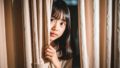 水色の背景の前で、フード付きパーカーを着た若い日本人女性が無表情でこちらを見つめているポートレート写真です。両手はパーカーのポケットに入れ、姿勢はリラックスしているものの、感情が読み取りにくい静かな表情が印象的です。感情の「空虚さ」「無気力さ」「沈黙」「中立的な状態」などを表現したいシーンに適しています。