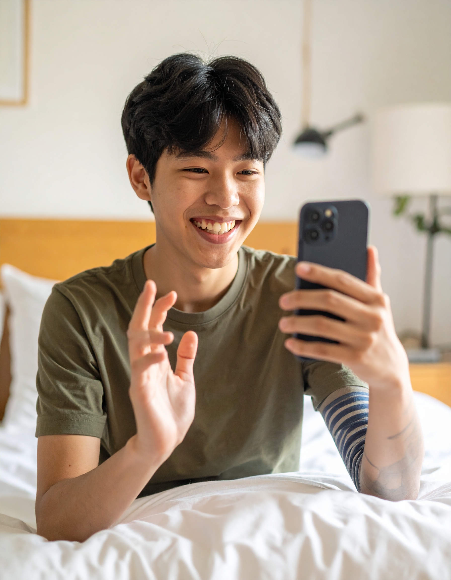 画面越しの笑顔:つながる喜びを感じた瞬間 喜び 2025.05.26 ベッドの上に座り、スマートフォンを手に楽しそうにビデオ通話をしている東アジア系の10代の少年。笑顔で手を振る様子が、安心感と親しみを与える1枚。家庭的で温かい雰囲気の中、つながりの喜びが伝わります。 DownLoad Small sizeMedium sizeLarge size この記事のタグ:#10代#スマートフォン#つながり#ビデオ通話#リモート#笑顔