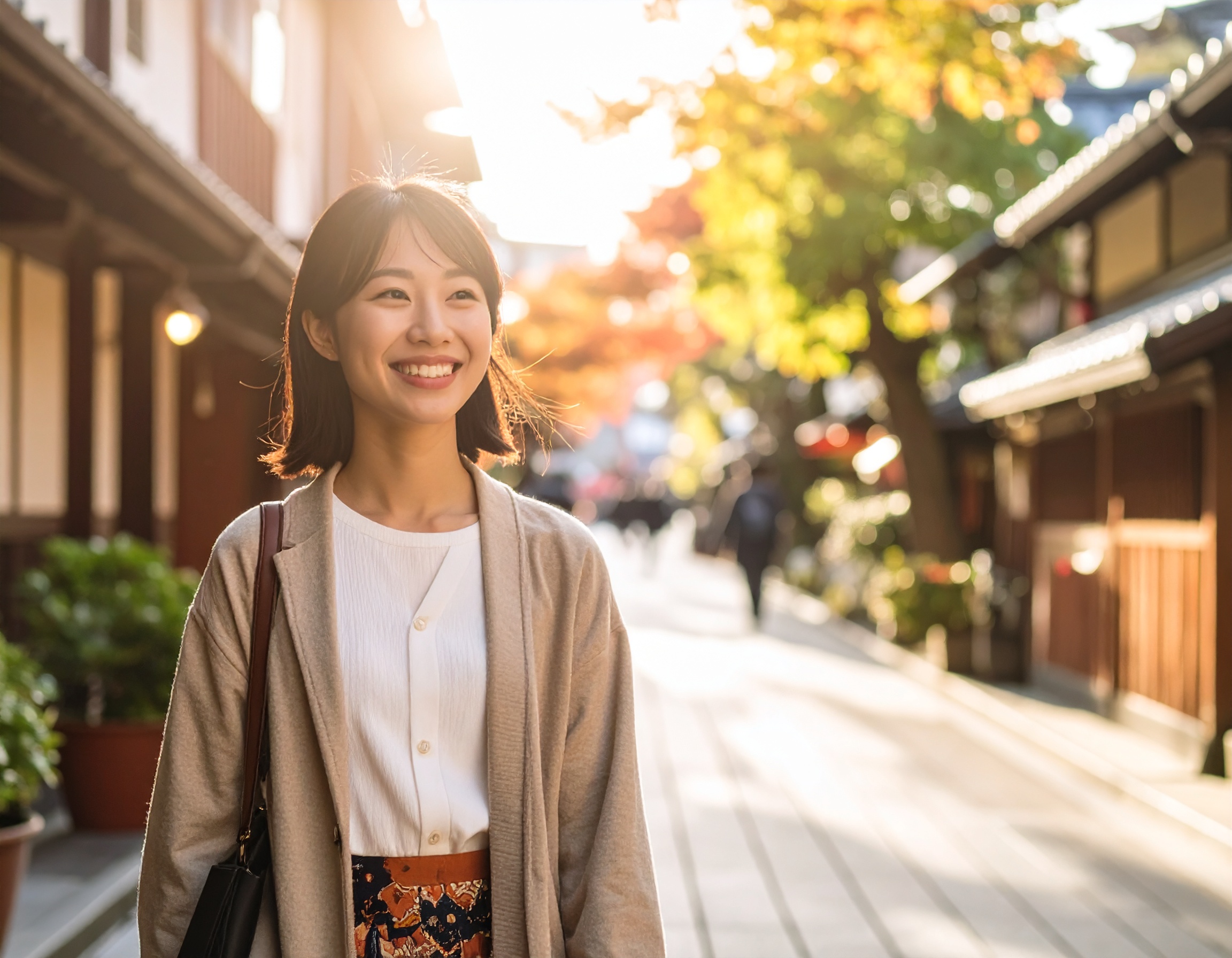秋の町並みを歩く笑顔の女性 安らぎ 2025.06.11 柔らかな夕陽に照らされながら、静かな和風の町並みを笑顔で歩く若い女性。心が和むような表情と、落ち着いた街の雰囲気が調和した一枚です。 DownLoad Small sizeMedium sizeLarge size この記事のタグ:#ai#人物#和風#女性#散歩#日常#晴れ#柔らかい光#町並み#癒し#秋#笑顔#美しい#若者#観光