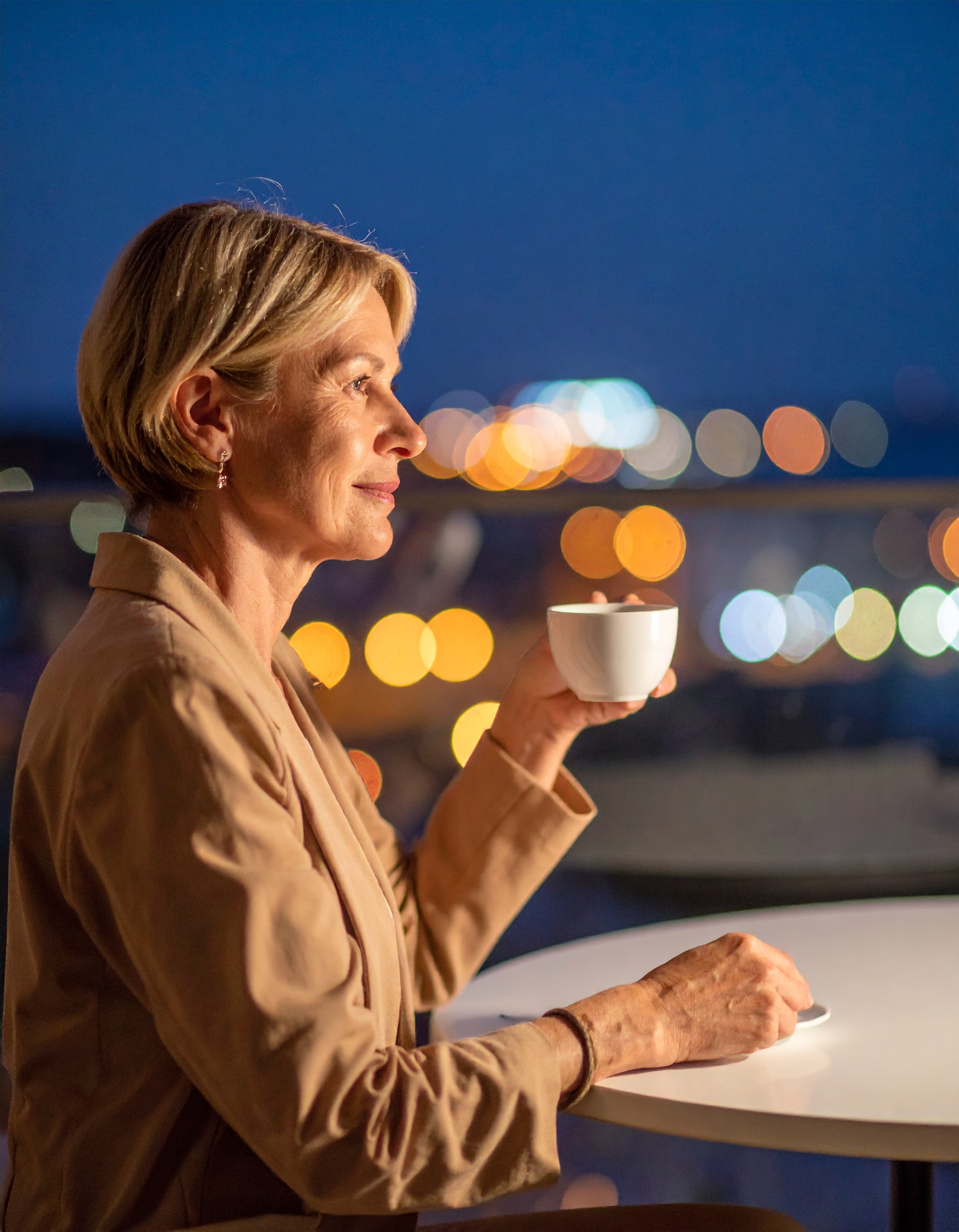 静寂の中に想いを馳せる夜のカフェ 安らぎ 2025.06.05 夜のカフェで、街の灯りを見つめながらコーヒーを口にする女性。落ち着いた表情とぼんやりとした光が、静けさと内省のひとときを映し出しています。大人の孤独や余韻を伝えたい場面に適したAI生成画像です。 DownLoad Small sizeMedium sizeLarge size この記事のタグ:#AI画像#カフェ#コーヒー#内省#夜#夜景#大人の時間#女性#落ち着き#静寂