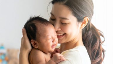 安らぎ 赤ちゃんを抱きしめる優しい笑顔の母親