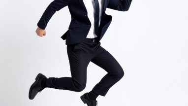 喜び 喜びを体で表現するスーツ姿の日本人男性