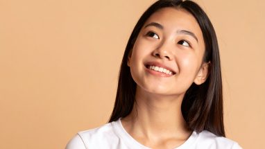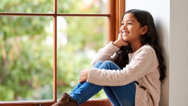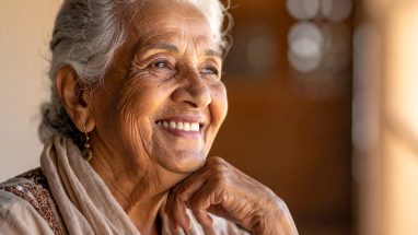 秋の陽ざしに包まれて:胸に手を当てる女性の感謝の表情
