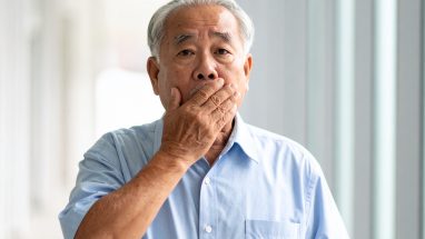 口元を手で覆う高齢男性の驚きと戸惑いの表情