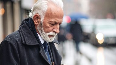 雨の街角にたたずむ老紳士の沈黙