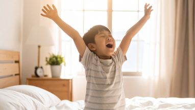 安心 穏やかに目を閉じて微笑む日本人の男の子