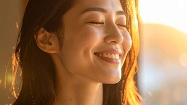 夕陽に包まれて微笑む、癒しのひととき