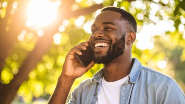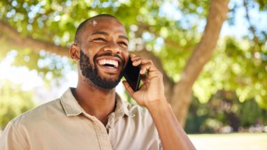 晴れやかな笑顔と電話のひととき